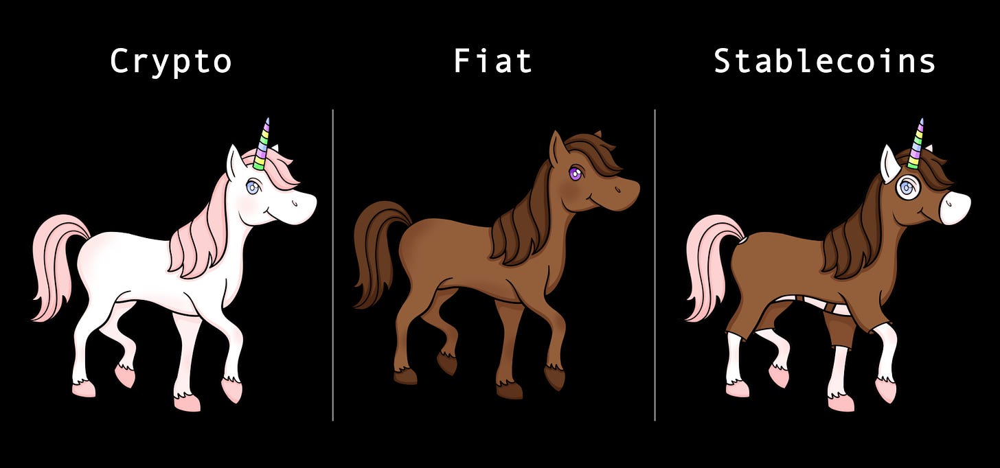 Crypto is unicorn money. Fiat is horse money. And stablecoins are unicorn money wearing a horse costume: you can do all sorts of crypto/DeFi things with them, but they present as a store of value that is stable relative to horse money.