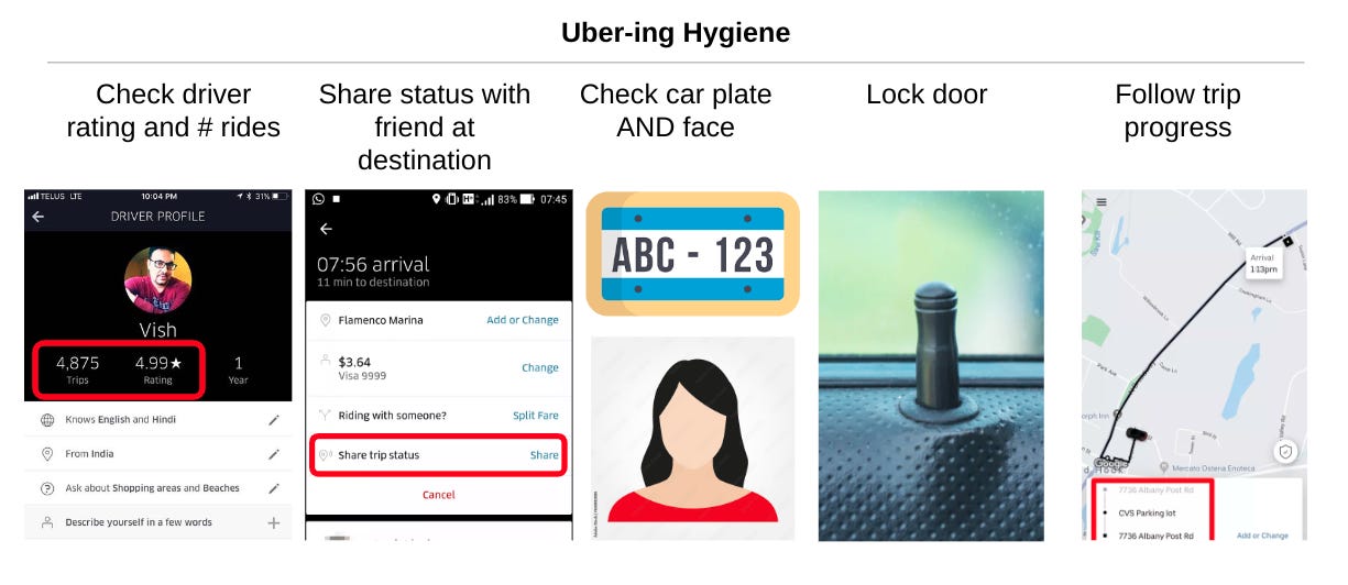 Important: familiarize yourself with Uber's safety features (within the trip UI, you can quickly indicate that something wrong is happening).